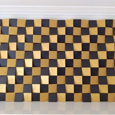 Mosaico de arte mural de madera en negro y dorado