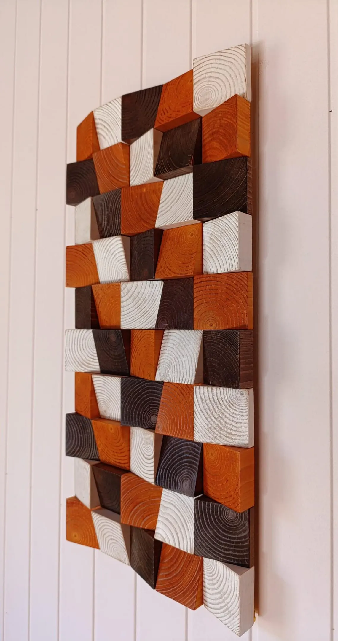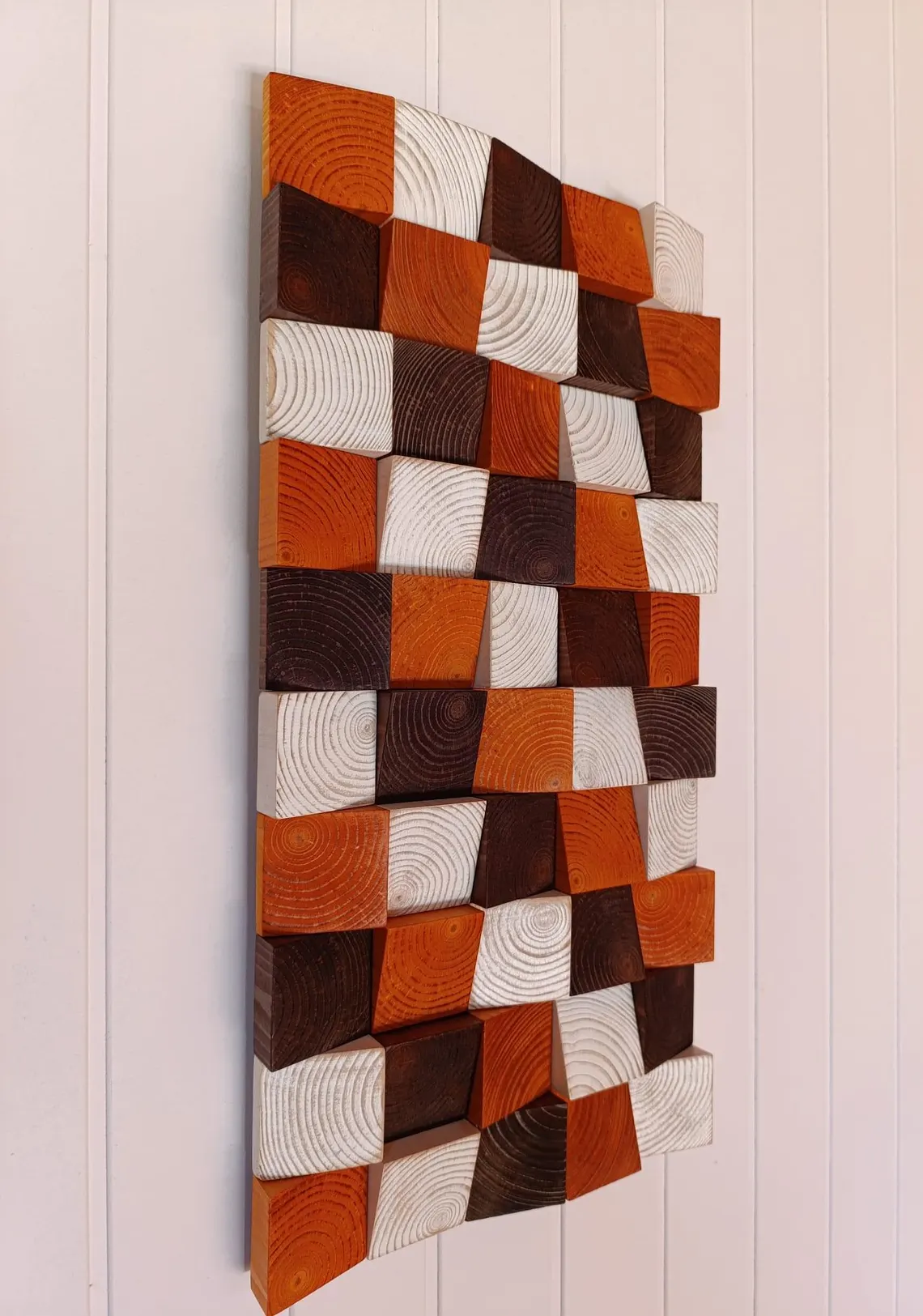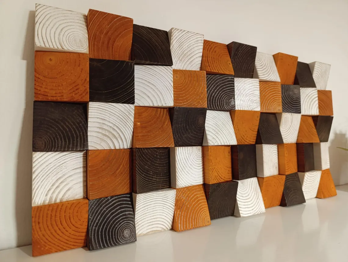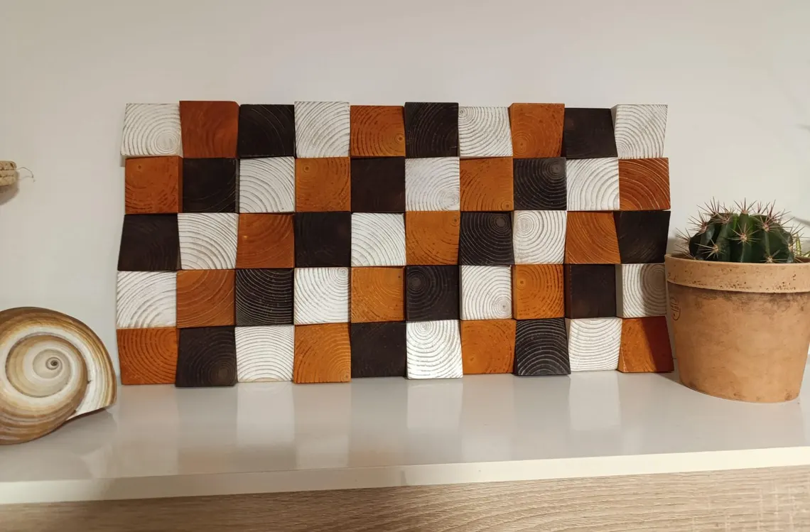 Decoración de pared de madera de nogal y cerezo, mosaico colgante de pared para decoración rústica, arte hecho a mano personalizado, regalo para el hogar.